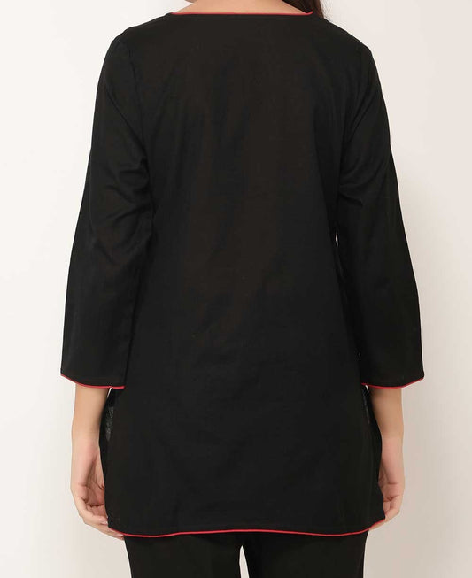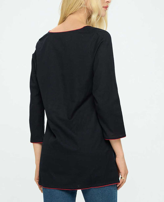Black And Red Woven Cotton Tunic Top